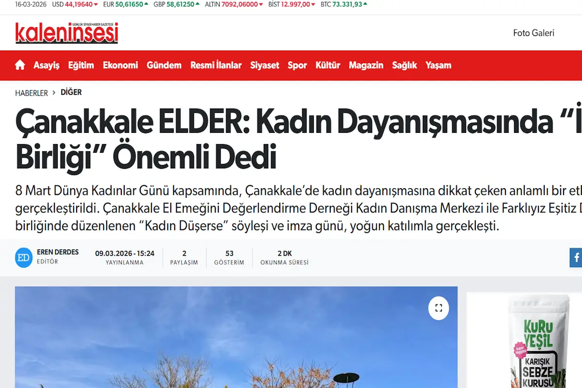 Haber Linki: Çanakkale ELDER: Kadın Dayanışmasında “İp Birliği” Önemli Dedi – | Kalenin Sesi – Çanakkale