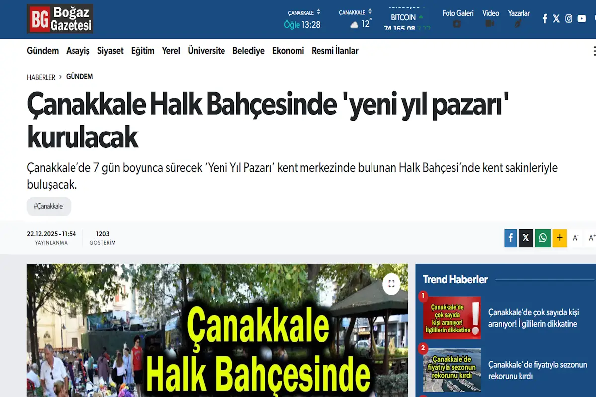 Haber Linki: Çanakkale Halk Bahçesinde ‘yeni yıl pazarı’ kurulacak – Çanakkale Boğaz Gazetesi
