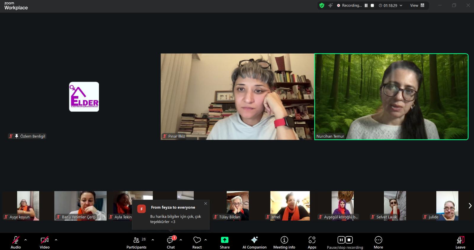 Konuşmacı olarak katılan Nurcihan Temur ve Pınar İlkiz’e katkılarından dolayı teşekkür ederiz.
