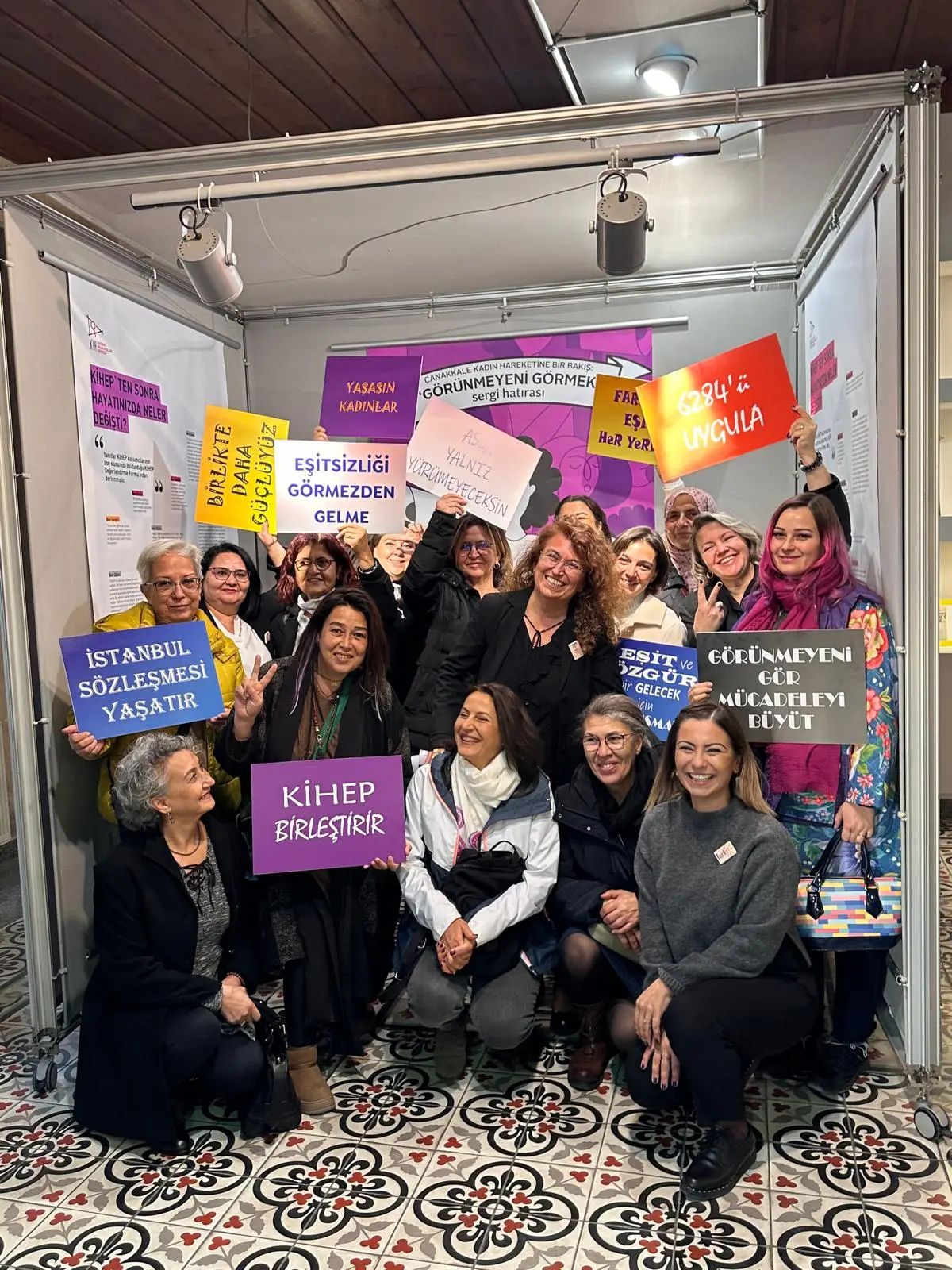 Bu sergiye gelen herkes, bir kadının hikayesine dokunuyor ve her dokunuş, bir değişimin parçası oluyor. Bu sergi salonunda, farklı yaşlardan, farklı hikayelerden kadınlar bir araya geldi. Sergi hatırası panosunun önünde ellerinde taşıdıkları pankartlar, sadece kelimelerden ibaret değil; her biri bir çağrı, bir duruş, bir umuttu. “İstanbul Sözleşmesi Yaşatır” diyerek yaşam hakkını savundular.” Eşitliği görmezden gelme” diyerek sessizliğe karşı ses oldular. “Kihep Birleştirir” diyerek eğitimin ve bilincin dönüştürücü gücünü hatırlattılar. “Kadınlar vardır” diyerek varoluşlarını ilan ettiler.