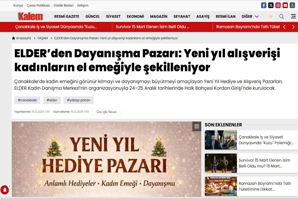 Haber Linki: ELDER’den Dayanışma Pazarı: Yeni yıl alışverişi kadınların el emeğiyle şekilleniyor – www.canakkalekalem.com